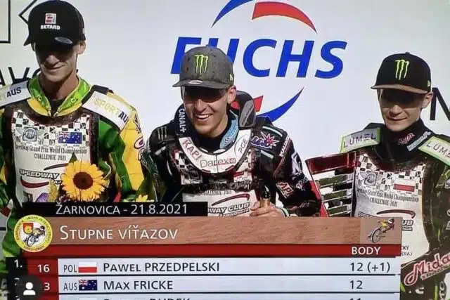 W sobotę o 14 odbył się finał Grand Prix Challenge w słowackiej Żarnowicy, gdzie po emocjonujących zawodach aż dwójce Polaków udało się zakwalifikować do przyszłorocznego cyklu SGP. W biegu dodatkowym zwycięstwo w turnieju zapewnił sobie Paweł Przedpełski, a na najniższym stopniu podium stanął Patryk Dudek. W Grand Prix swoje miejsce zachowa również Max Frick, który zajął drugie miejsce.