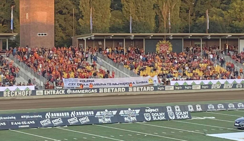 „Pytanie koleina – Czy Dryła z Lublina to największa świnia?”. Taką treść miał transparent wywieszony przed sektorem najbardziej zagorzałych kibiców z Wrocławia na Stadionie Olimpijskim. Reakcję kibiców można tłumaczyć różnie.