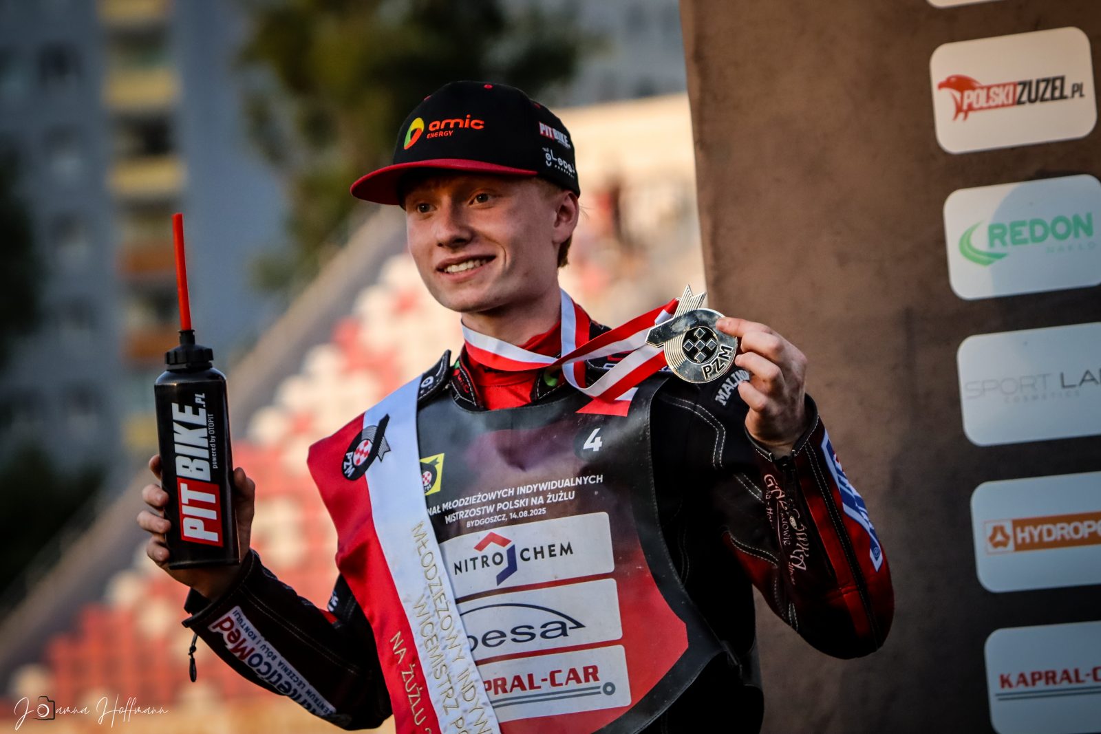 Pierwsze zawody to były piknikowe gonitwy na pitbike’u. Start z gumy, prowizoryczne bandy i zabawa, która szybko przerodziła się w pasję. Później pojawił się miniżużel i pierwsze treningi w BTŻ Polonia Bydgoszcz. – „Mama długo nie chciała się zgodzić, żebym się ścigał, ale w końcu dała się przekonać. Trener od razu zapisał nas do klubu. Tata zbudował mi pierwszy motocykl i dalej już poszło” – opowiada.