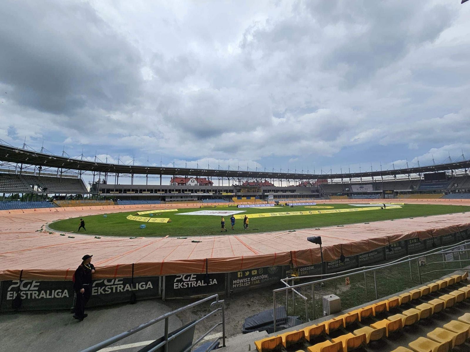Obecnie opady deszczu nad stadionem ustały, a plandeki nie ma już na torze. Teraz trwają prace, mające na celu przygotowanie nawierzchni do rywalizacji. Wydaje się więc, że jest szansa na to, że spotkanie w Gorzowie Wielkopolskim dojdzie do skutku. Zapraszamy do śledzenia na bieżąco relacji na żywo prowadzonej na naszym portalu. (link TUTAJ)