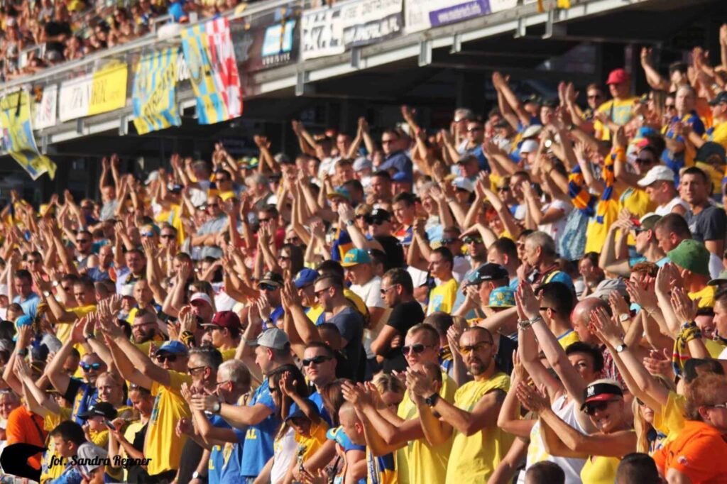 Mimo późnej godziny i trudnych warunków atmosferycznych na stadionie zjawiło się mniej kibiców. Jednak ich doping był bardzo głośny.