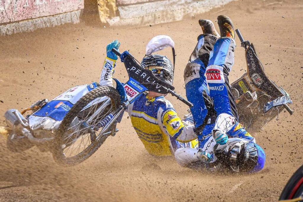 Mecz od samego początku był bardzo wyrównany. Po pierwszej serii startów na tablicy wyników widniał remis 12:12. Na pierwsze większe przełamanie czekaliśmy do końca drugiej serii. Wówczas rzeszowianie wygrali dwa razy w stosunku 4:2. Tym samym miejscowi wyszli na czteropunktowe prowadzenie. W szóstym wyścigu doszło do bardzo groźnego wypadku z udziałem Mateusza Majchera oraz Filipa Hjelmlanda. Junior gospodarzy opuścił tor na noszach.