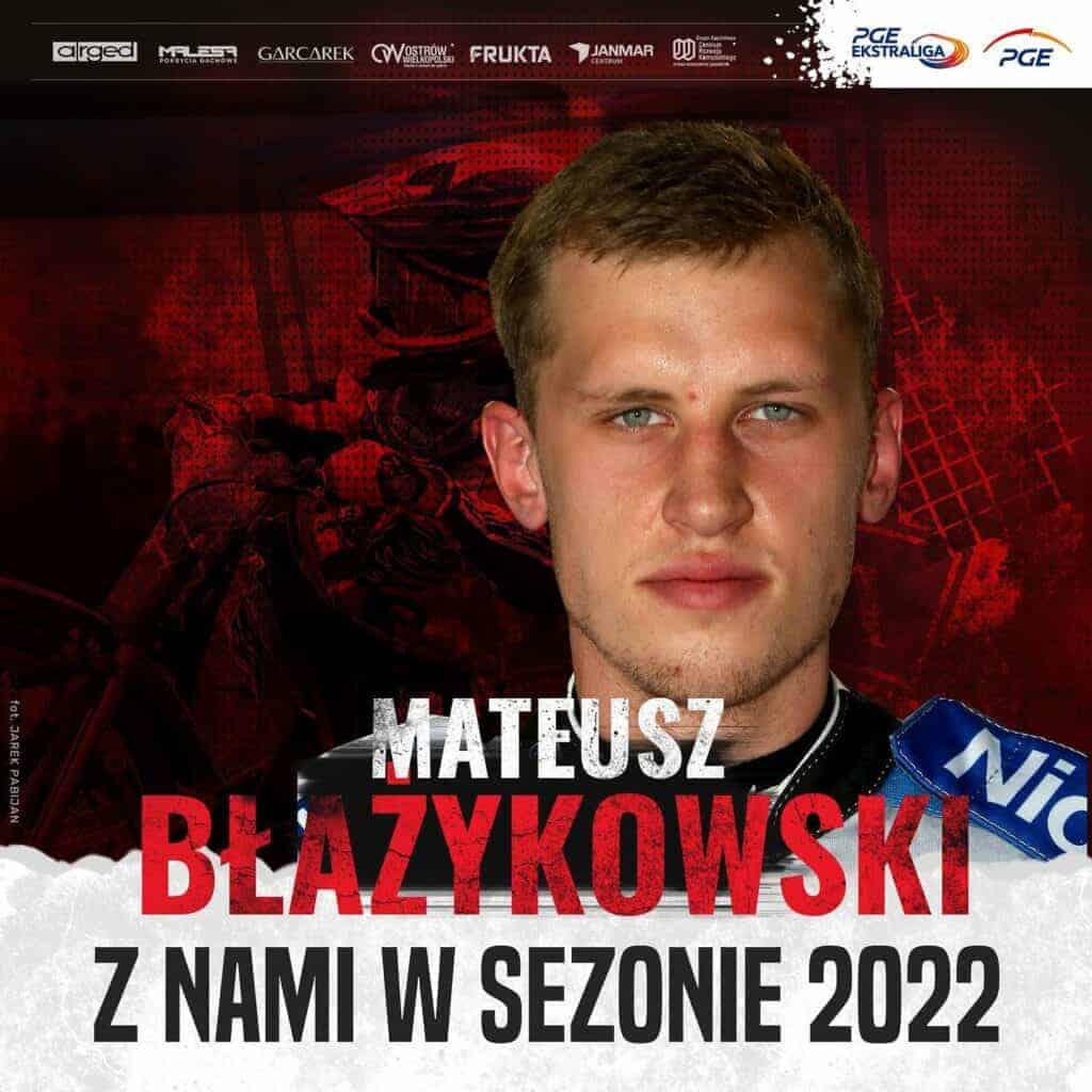 Kończący wiek juniora Mateusz Błażykowski zostaje nowym zawodnikiem zespołu z Ostrowa. Cała swoją karierę spędził on na torach pierwszoligowych w Łodzi, Gnieźnie a ostatnie dwa lata spędził w aspirującej do jazdy w Ekstralidze- Bydgoszczy.