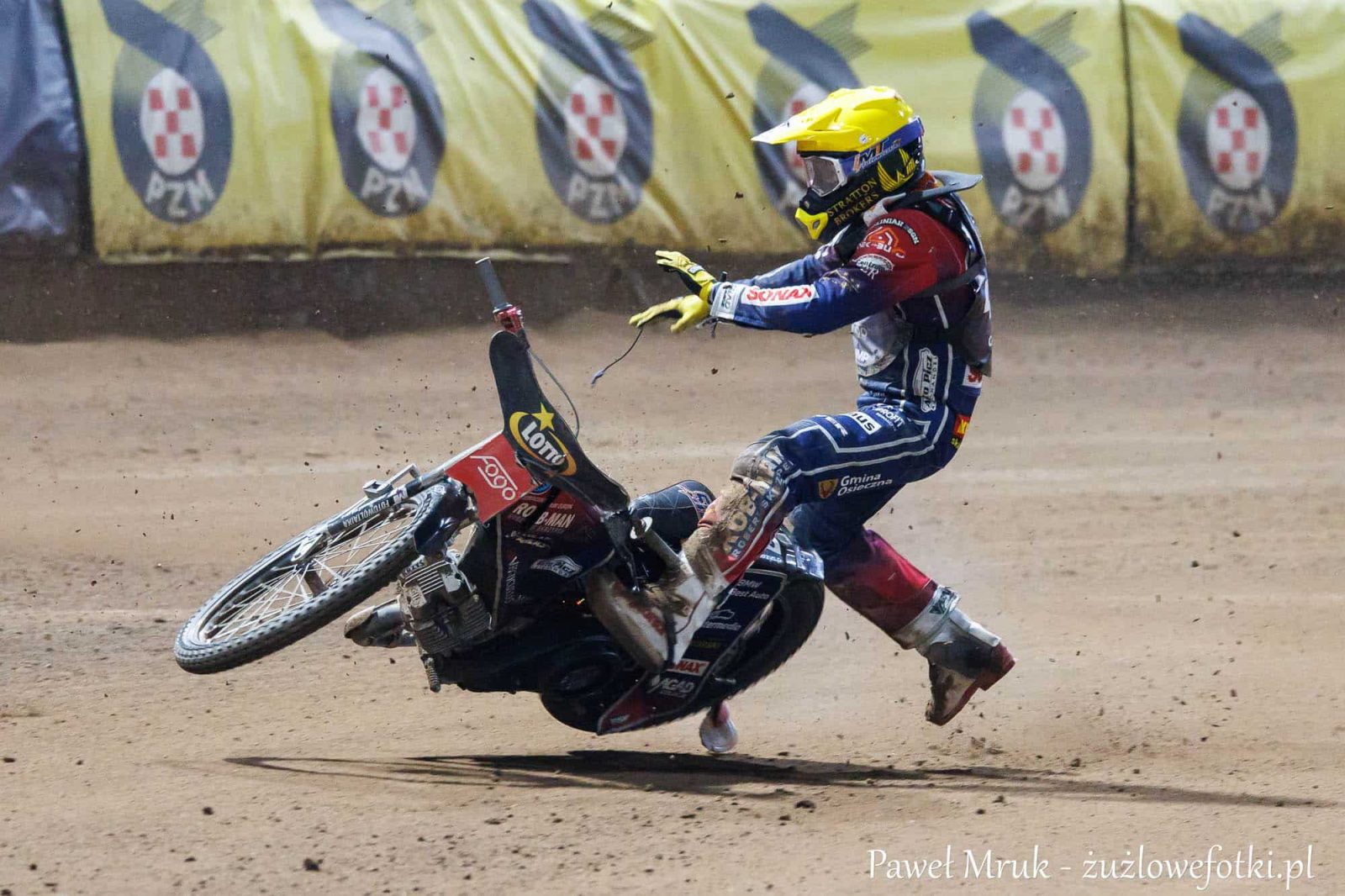 Właśnie wtedy doszło do dramatycznej sytuacji – Zmarzlika podniosło, maszyna wyraźnie wymknęła mu się spod kontroli i z pełnym impetem wjechał w Kuberę. Reprezentant Orlen Oil Motoru Lublin nie miał szans, aby zareagować. Uderzony od boku, z całym impetem padł na tor, uderzając plecami i głową o nawierzchnię.