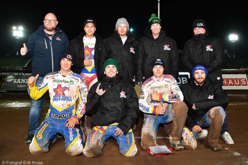 Na sukces całej drużyny wszyscy solidnie zapracowali, ponieważ oprócz juniorów każdy z nich przywiózł ważne punkty. U wicemistrza znowu Polak Kacper Woryna stawał na wysokości zadania zapisując przy swoim nazwisku 11 oczek z bonusem, będąc dzięki temu kolejny raz liderem. Raptem jeden punkt mniej wywalczył Michael Jepsen Jensen, a Gleb Chugunow i Pontus Apsgren po osiem z bonusami. Dobrego popisu nie dał Andrzej Lebiediew, bo trójka z dwoma bonusami w pięciu startach to zdecydowanie za mało.