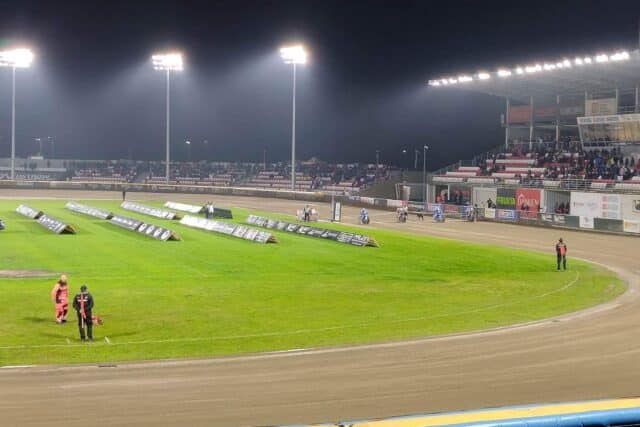 Tor o godzinie planowego rozpoczęcia spotkania nie nadawał się do bezpiecznej jazdy. Start został więc przełożony najpierw na godzinę 20:00, a potem 20:15. Zawodnicy wyjechali na próbę toru, a po niej stwierdzono, że tor nadaje się do jazdy.
