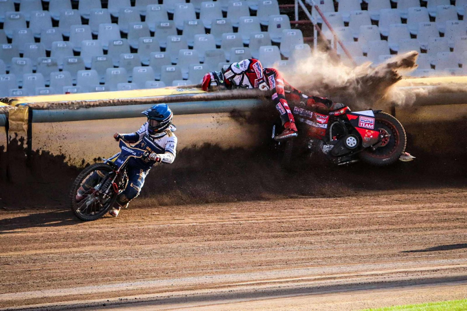Sprawca wypadku zachował się jednak w dość kuriozalny sposób. Bartosz Bańbor miał podjechać pod trybunę główną, gdzie wyraził swoje pretensje do sędziego, a także miał prowokować kibiców zgromadzonych na bydgoskim owalu. Będący arbitrem dzisiejszej rywalizacji Krzysztof Meyze nie wahał się i zdecydował się na pokazanie zawodnikowi czerwonej kartki, co wydaje się w pełni uzasadnioną decyzją.