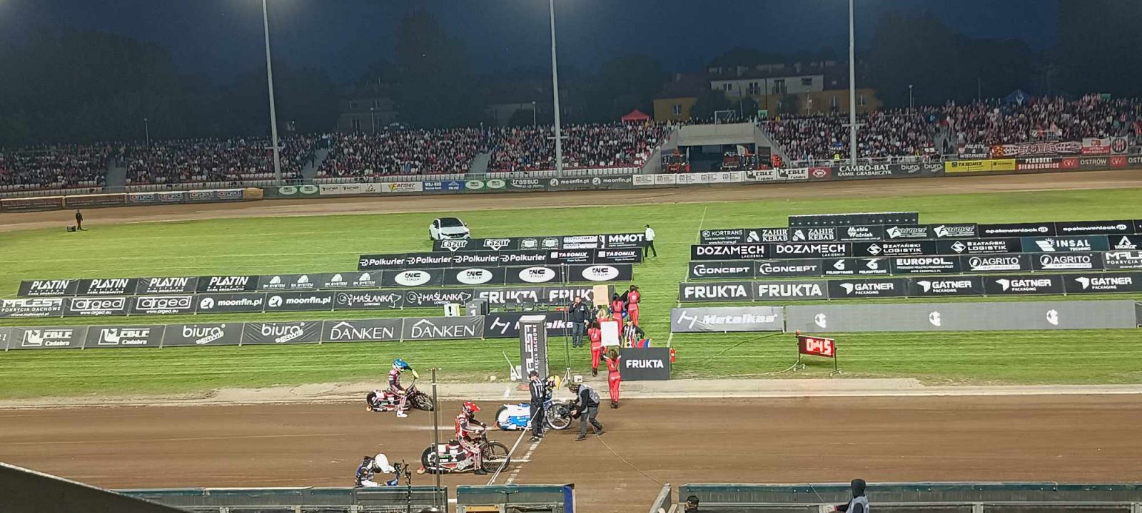 Biegi nominowane w całości należały do gospodarzy, którzy w 14. gonitwie poprzez biegowe zwycięstwo zapewnili sobie remis w spotkaniu. W ostatnim wyścigu przypieczętowali wygraną, zdobywając 5:1. Finalnie zespół z Ostrowa pokonał przyjezdne Żurawie 47:43.